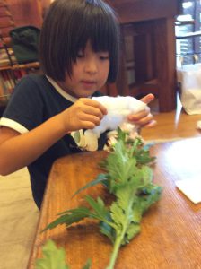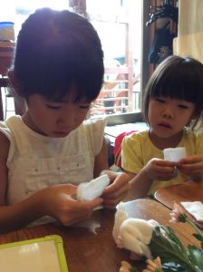本番のお月見には、お家でお母さんと作って供えてね!と