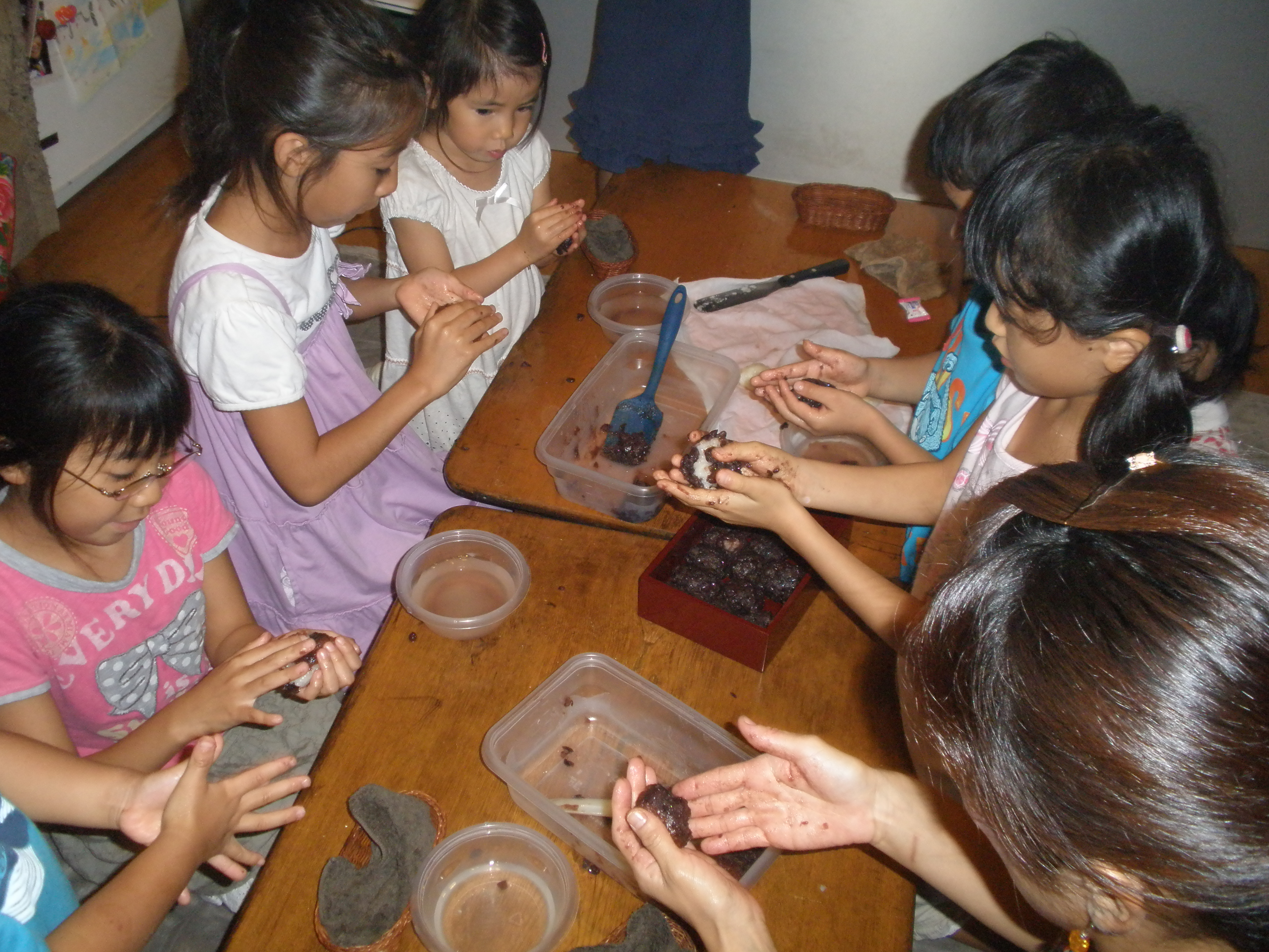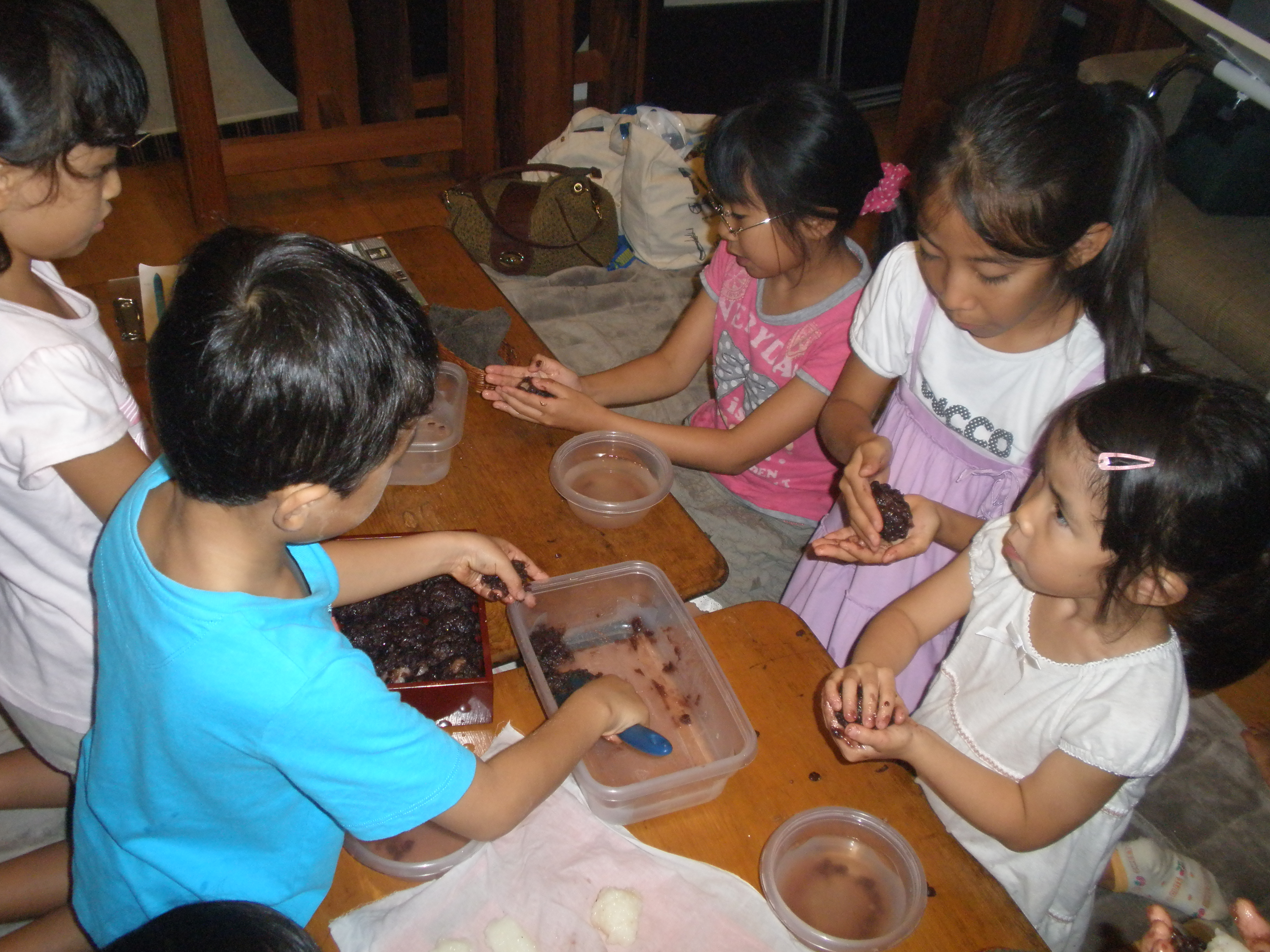 「米粒をつぶしすぎないでね」と私が言ったためか、みんなとっても慎重・・・