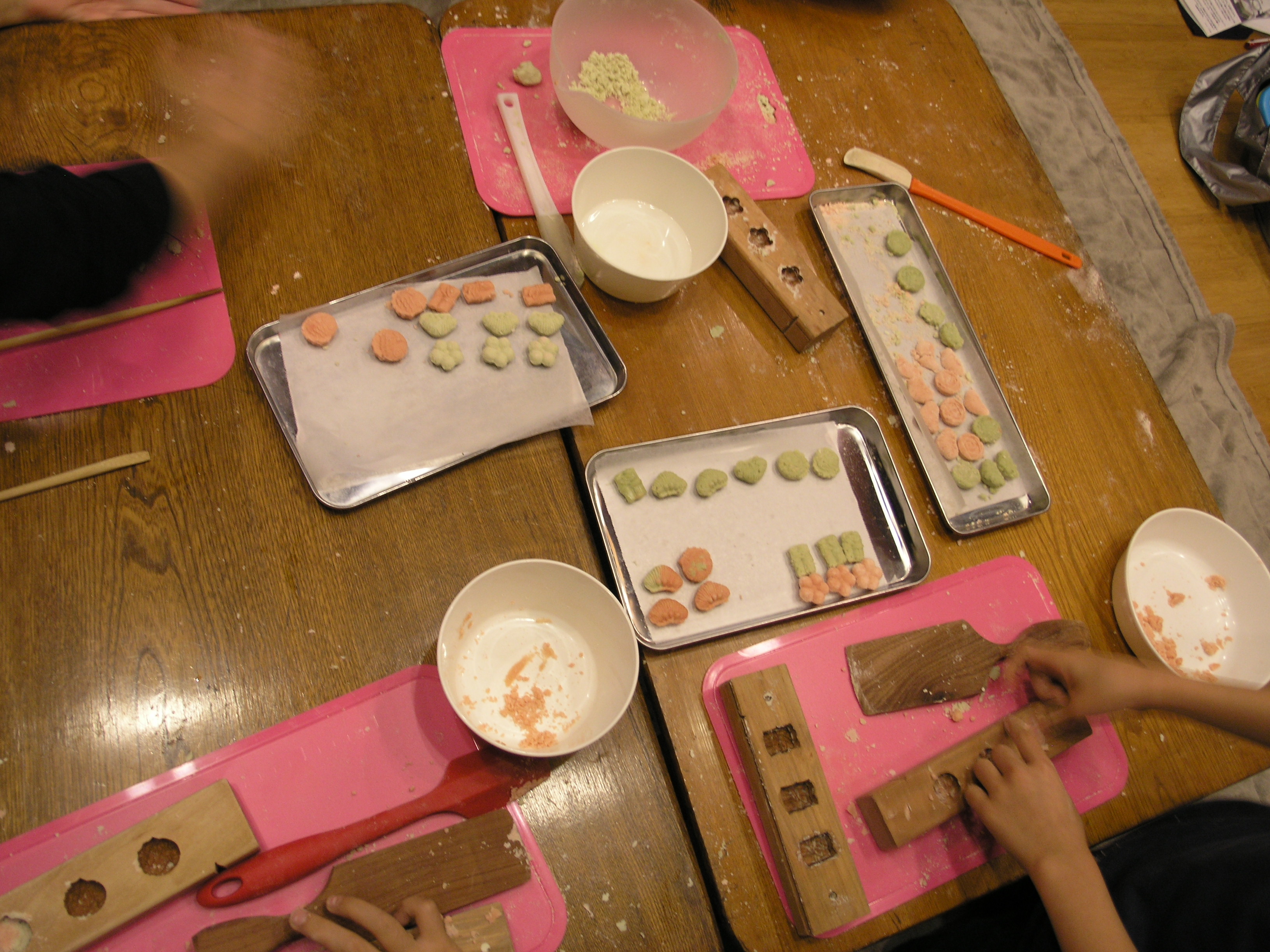 この日は菓子木型を使って和三盆糖でお干菓子を作ったのですが、