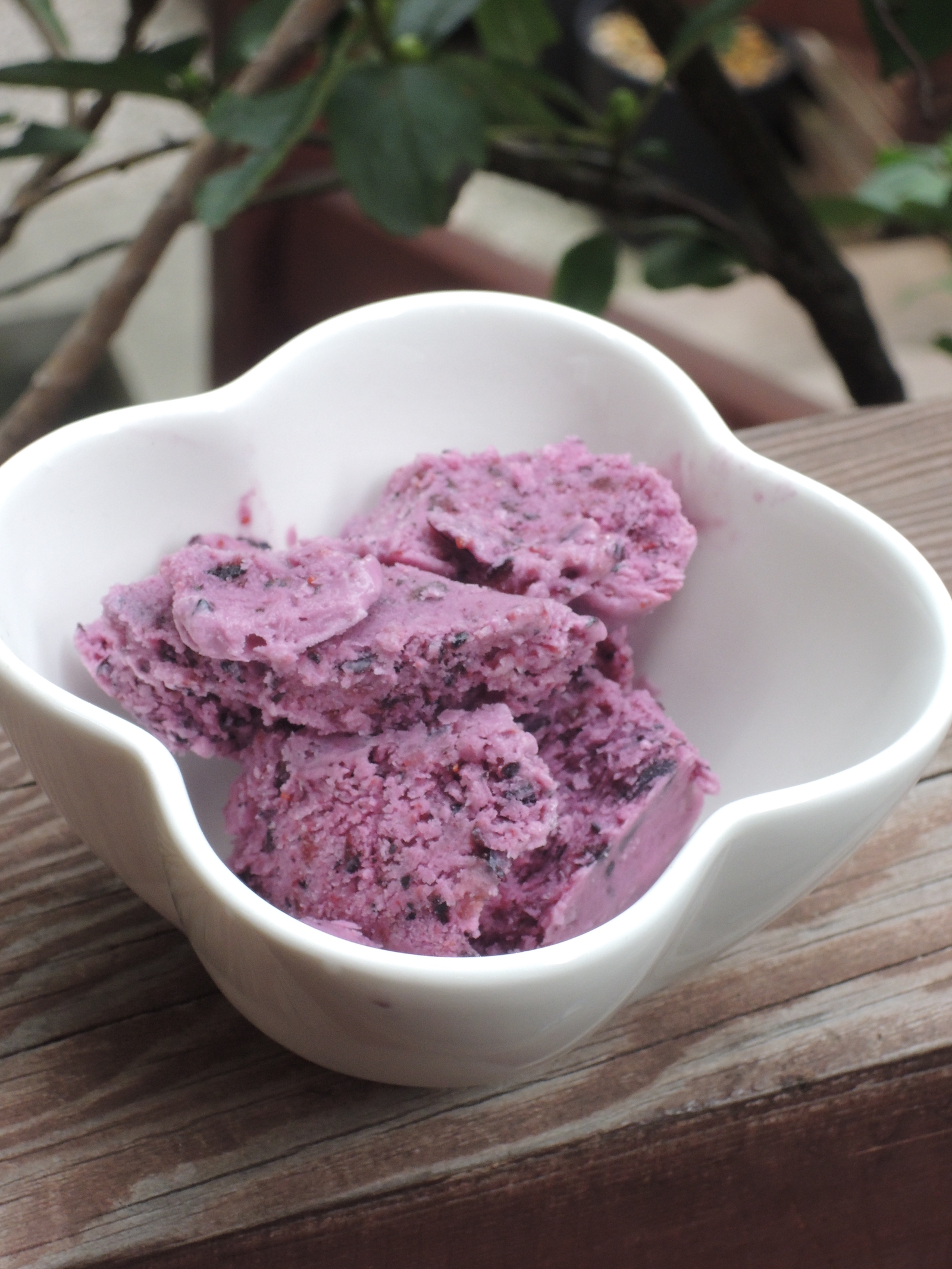 ブルーベリーを主役に、ヨーグルトジェラートと、マスカルポーネチーズジェラートの2種を作りました。