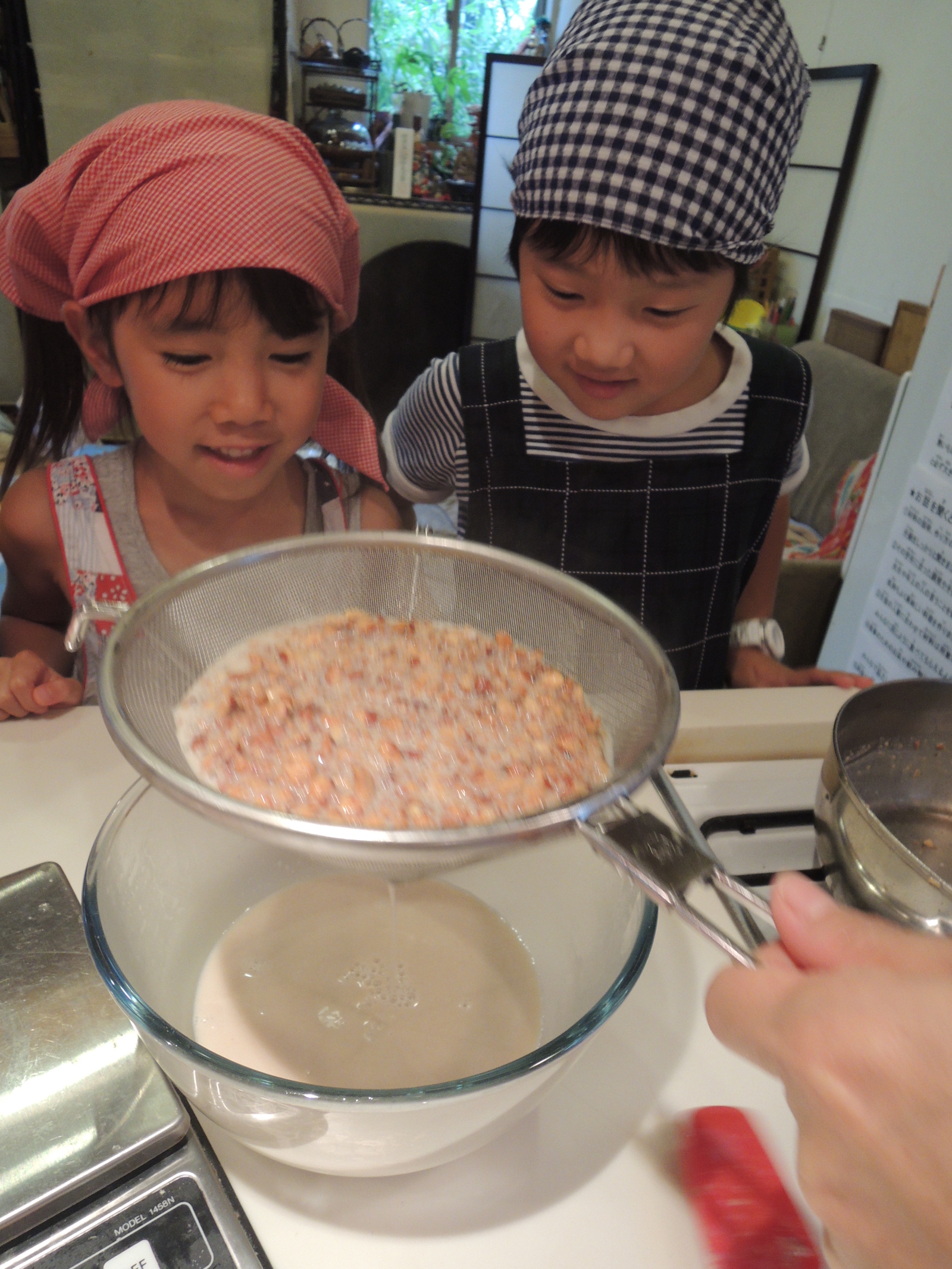 アーモンドをフードプロセッサーで砕き、牛乳で煮て、漉します。