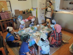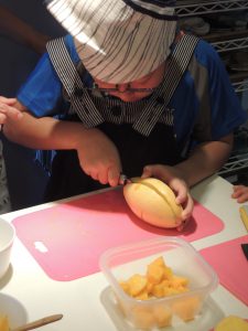 皿洗い・包丁指導・焼き方指導・写真撮影と、ボランティアのお手伝いママ、