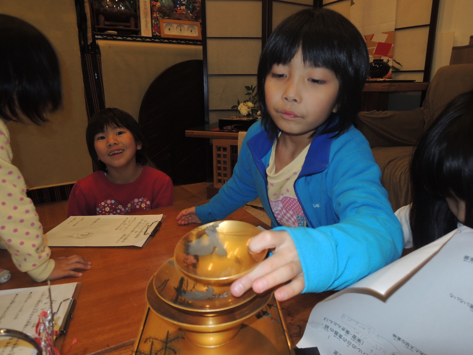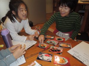 子供たちは自分の両親のお雑煮の中身の発表を。