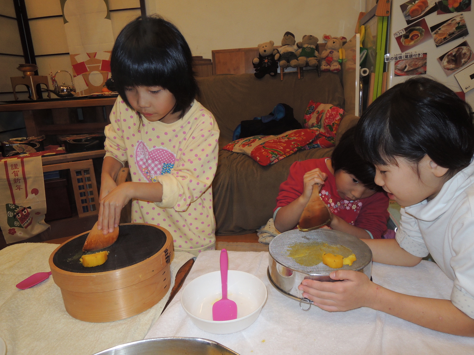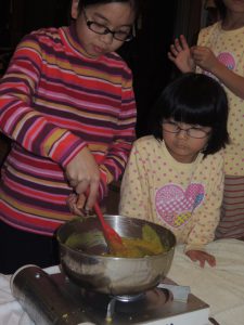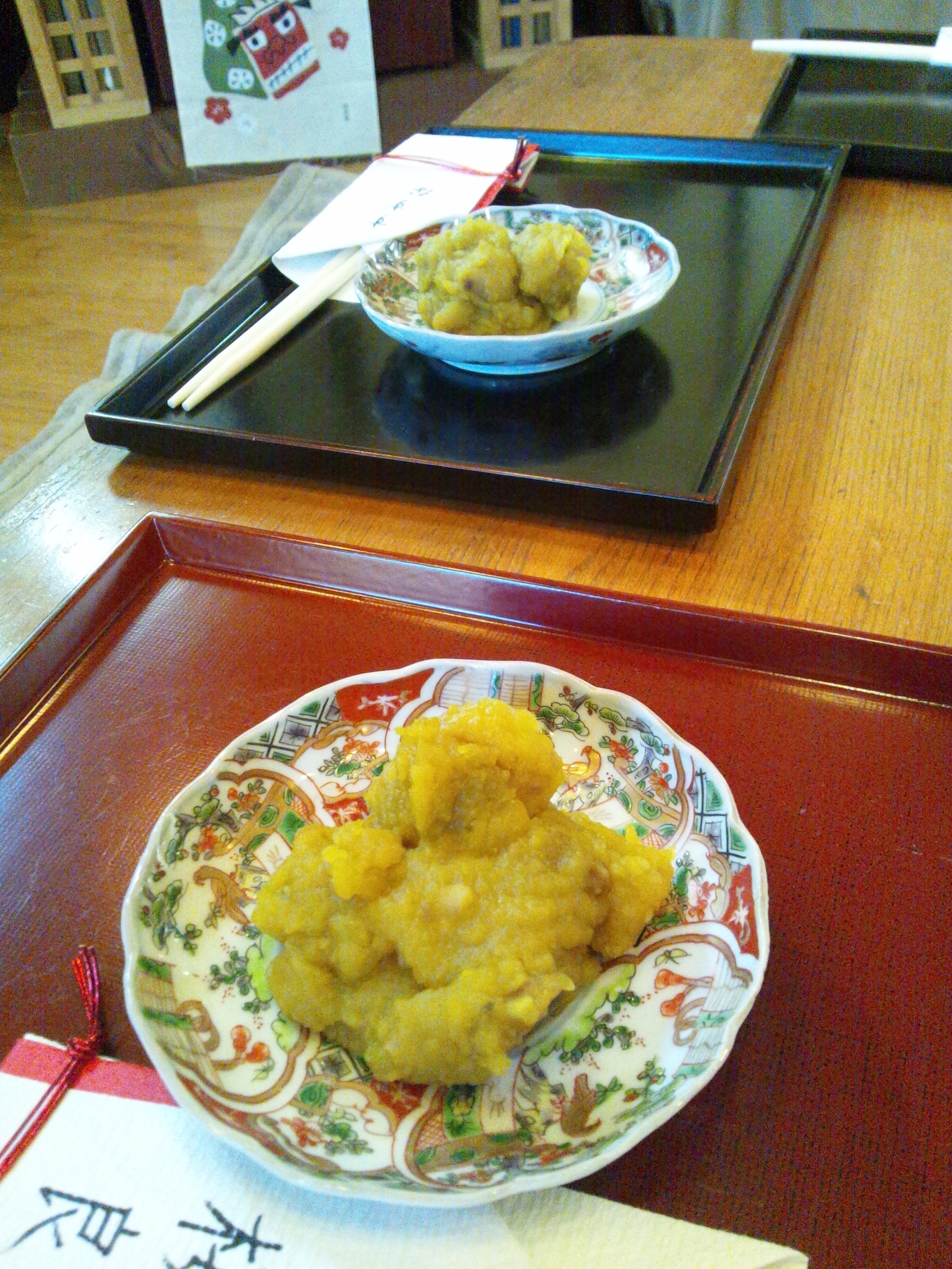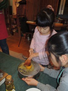 すべて子供たちの手作りの栗きんとん、出来上がり~♪いただきます。