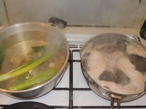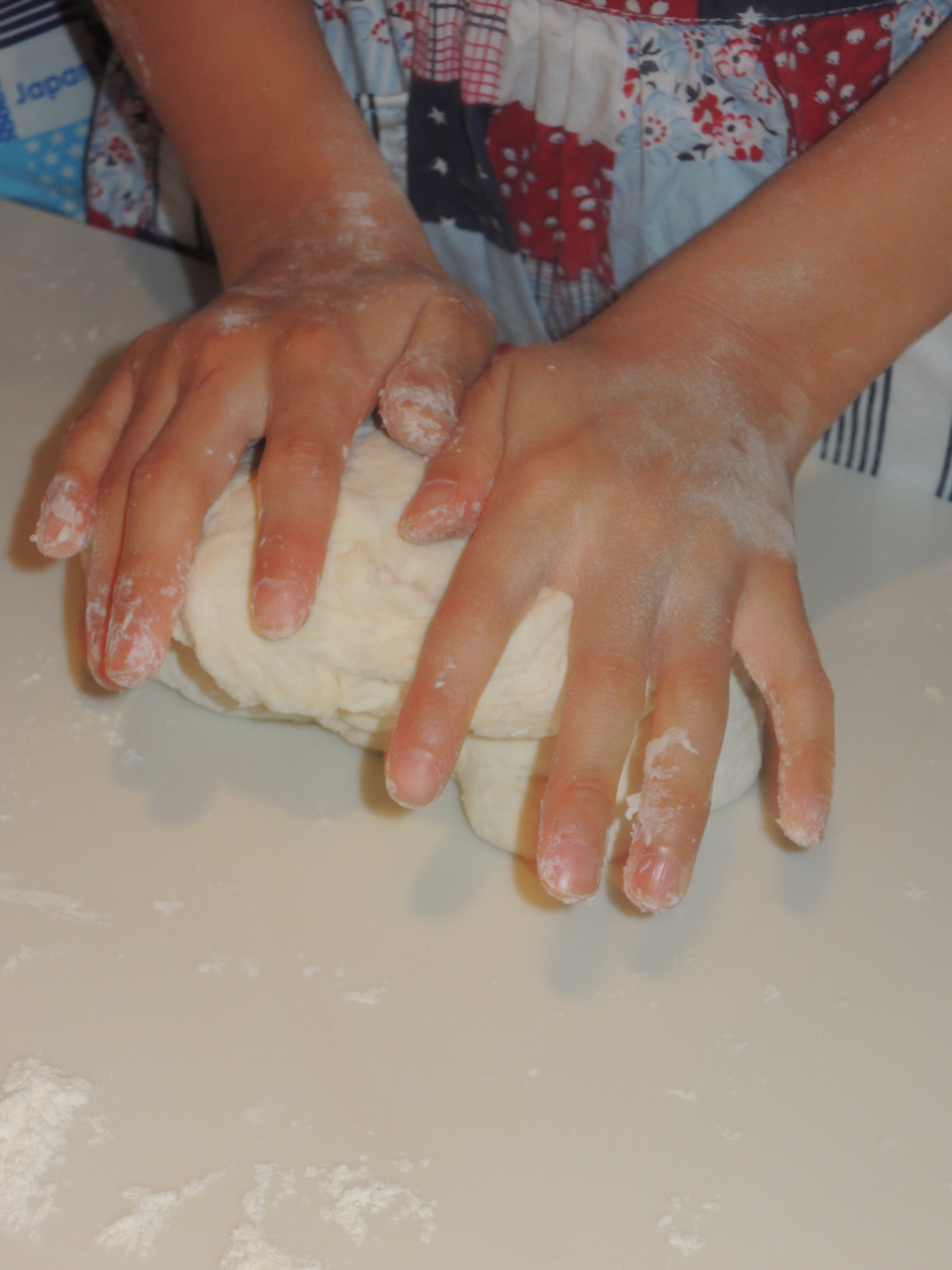 煮込んでいる間に、小麦粉を練ってこねていきます。