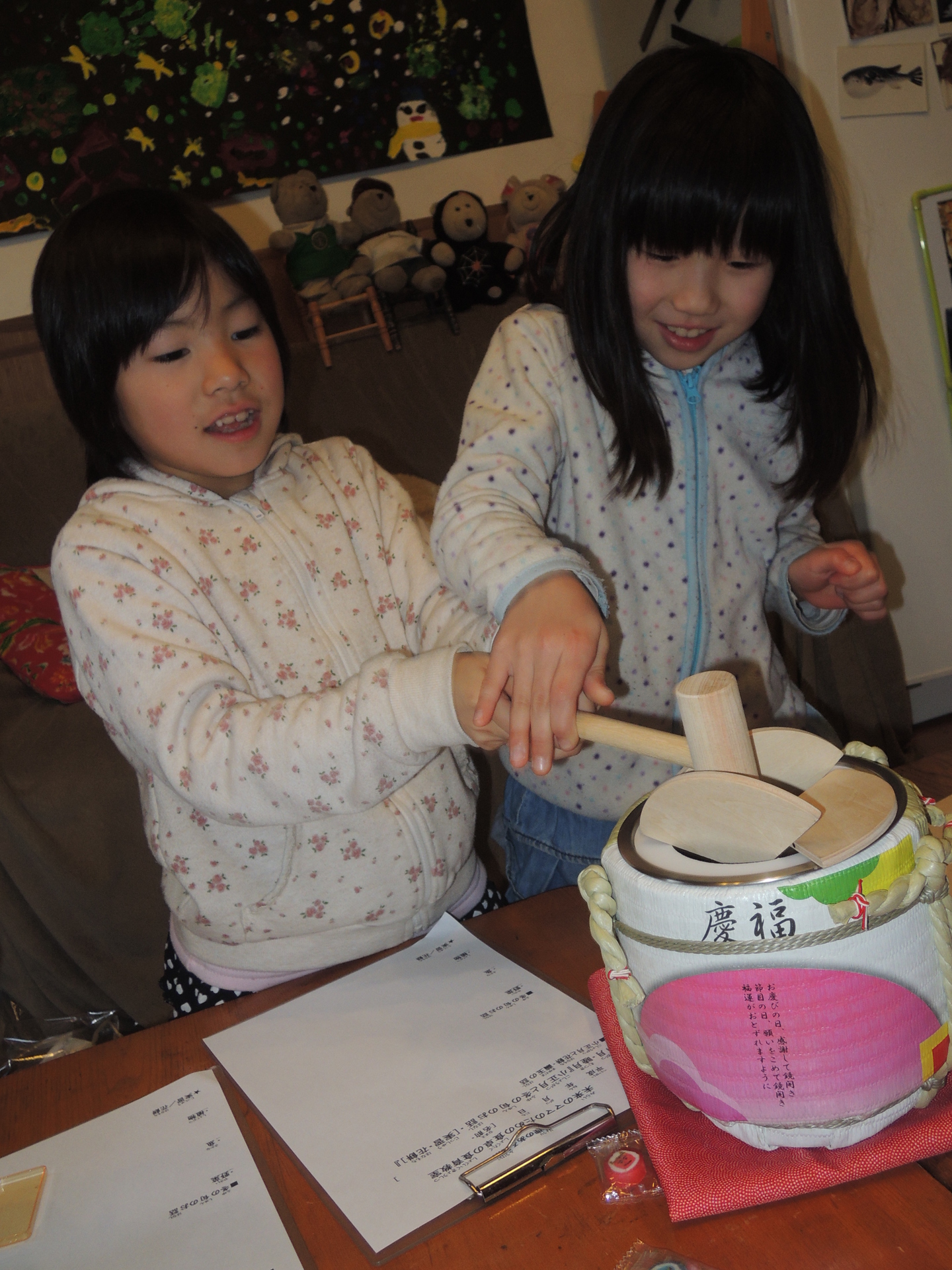 新春最初のクラスの始まりは、毎年恒例、鏡開き!