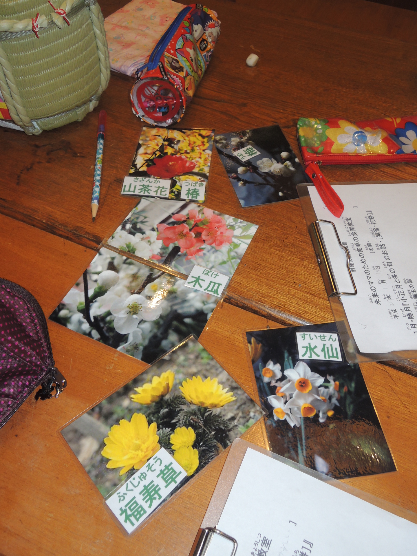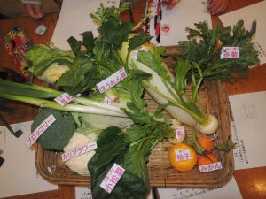 冬の旬は、野菜と果物は実物見ながら、名前あて。