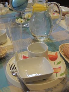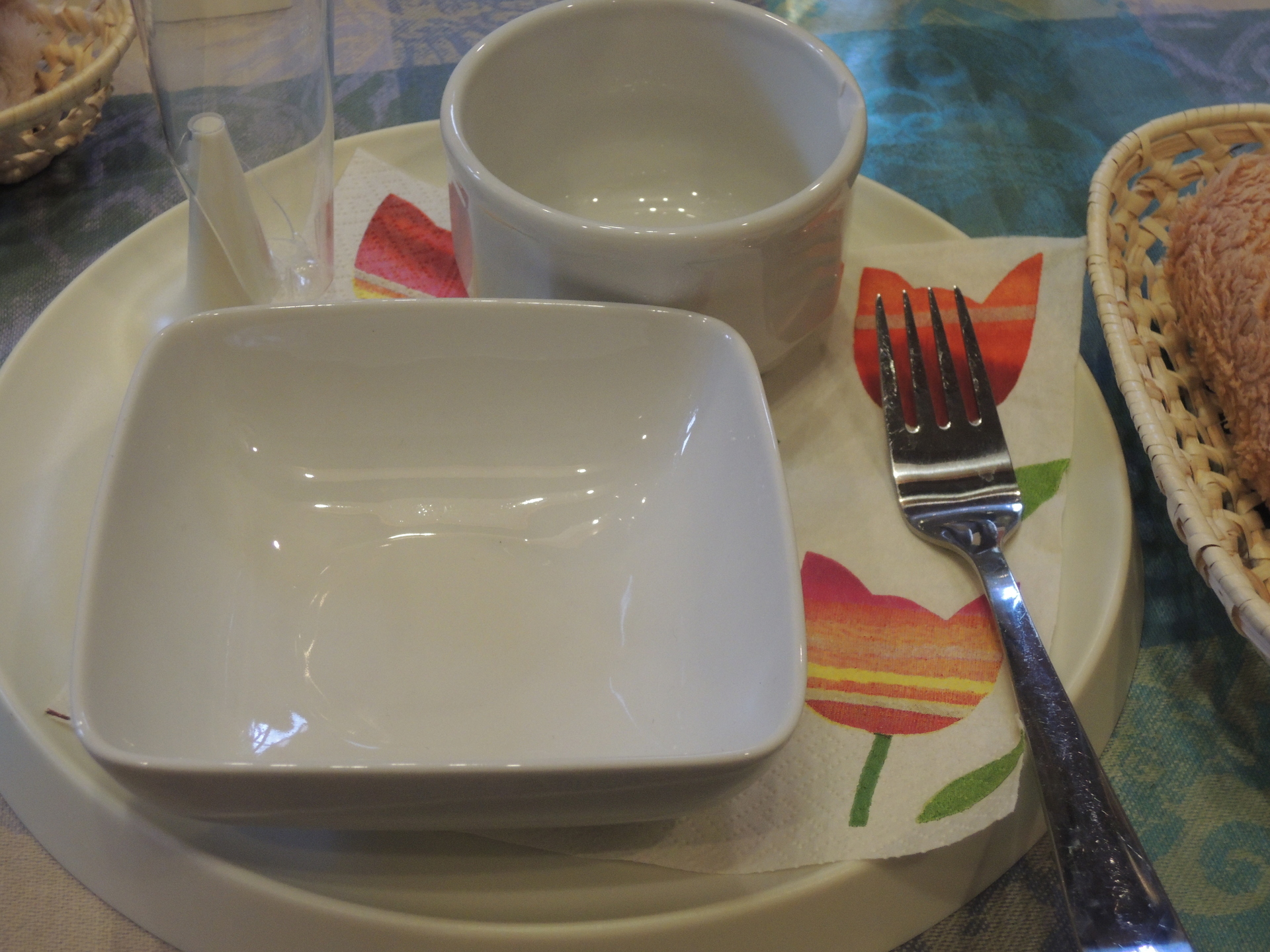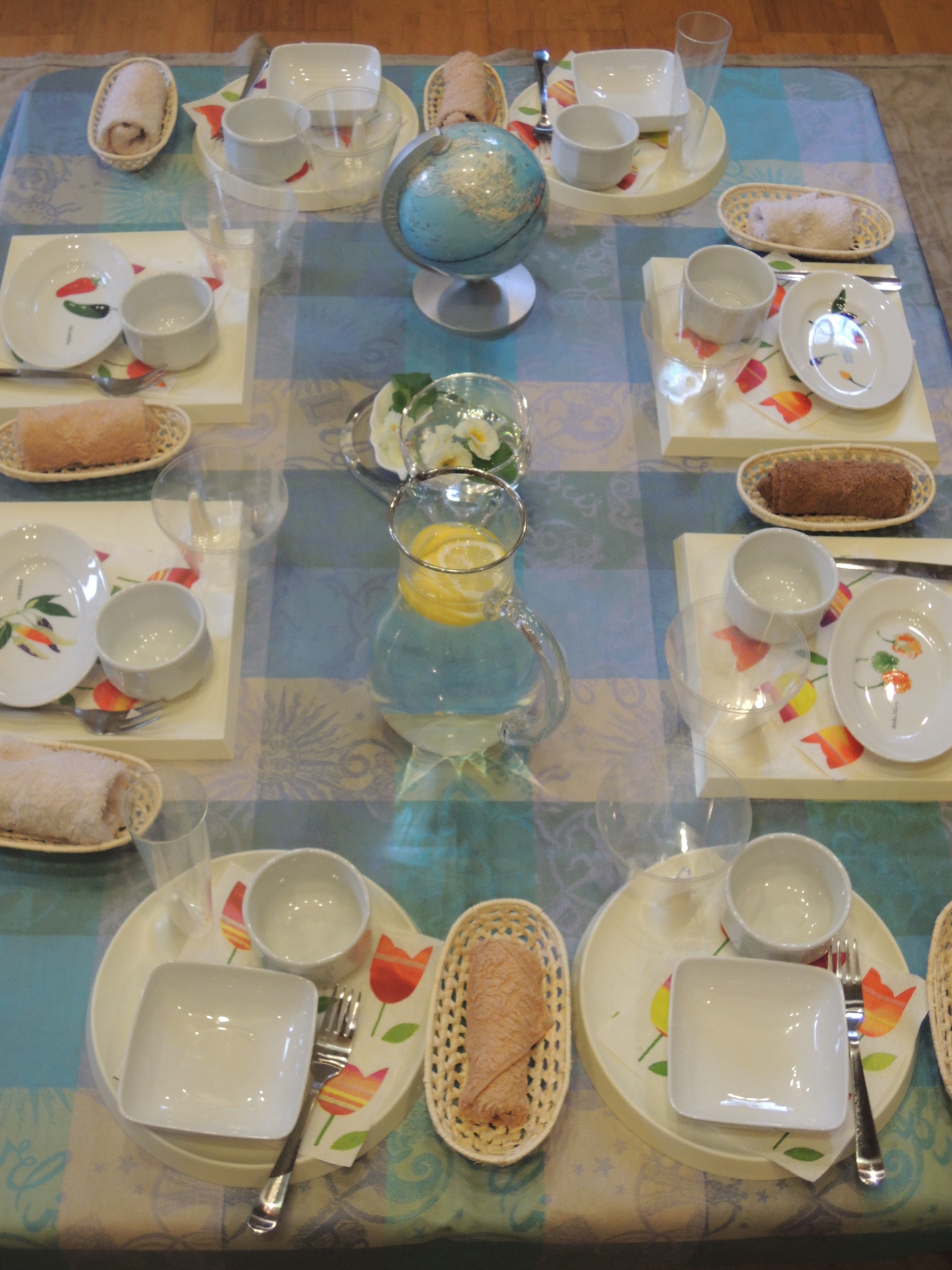 今回の早春のテーブル、チューリップ柄のペーパーナプキンと、