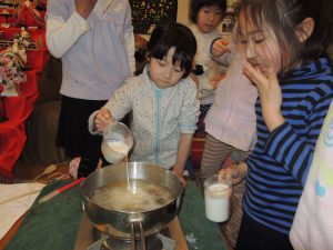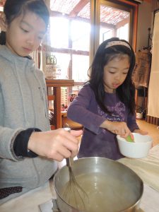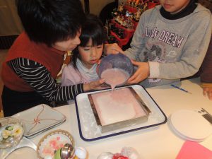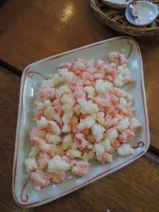 そして1月の小正月クラスで作った花餅を砕いて揚げて、
