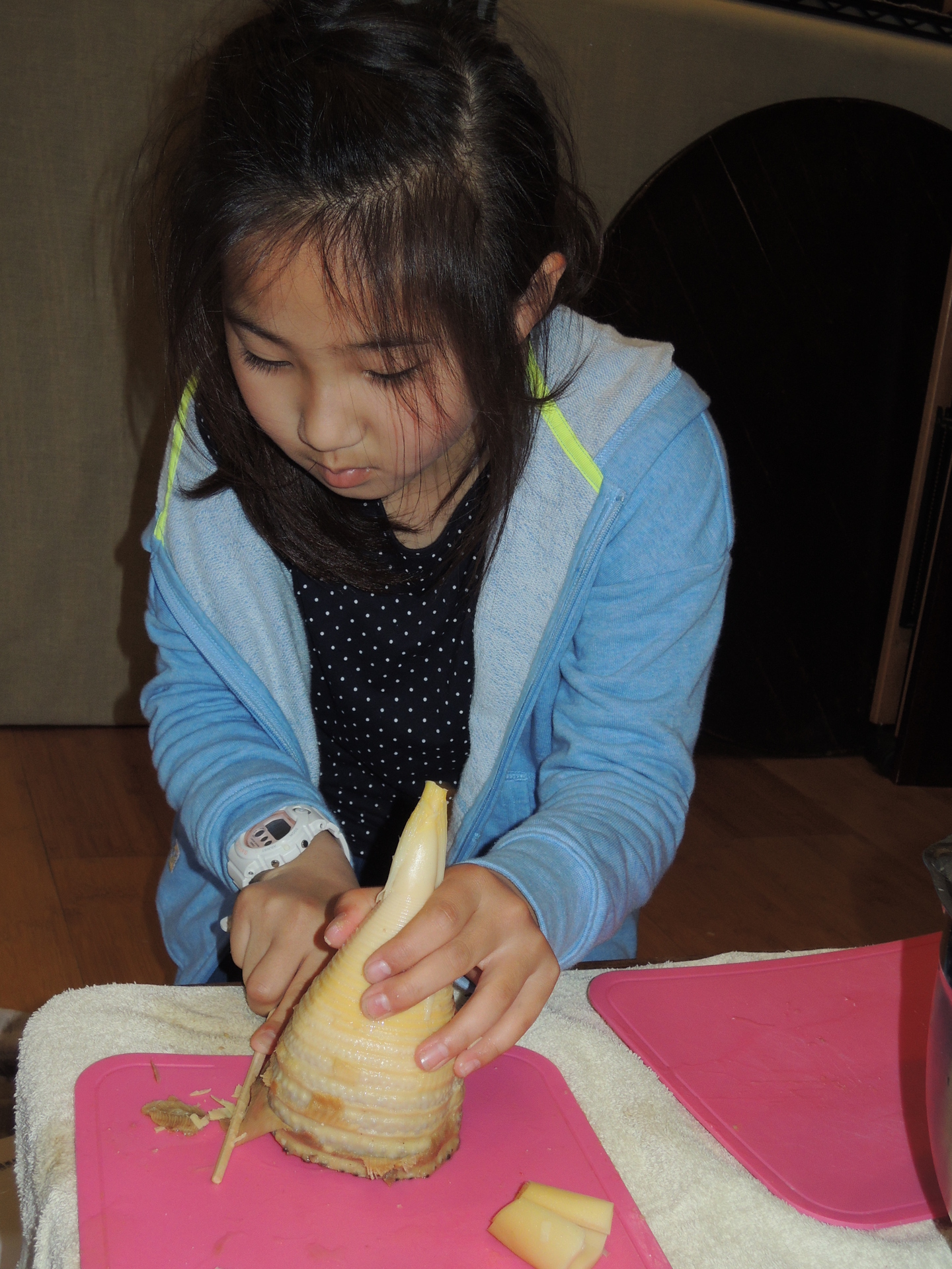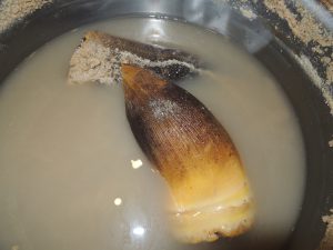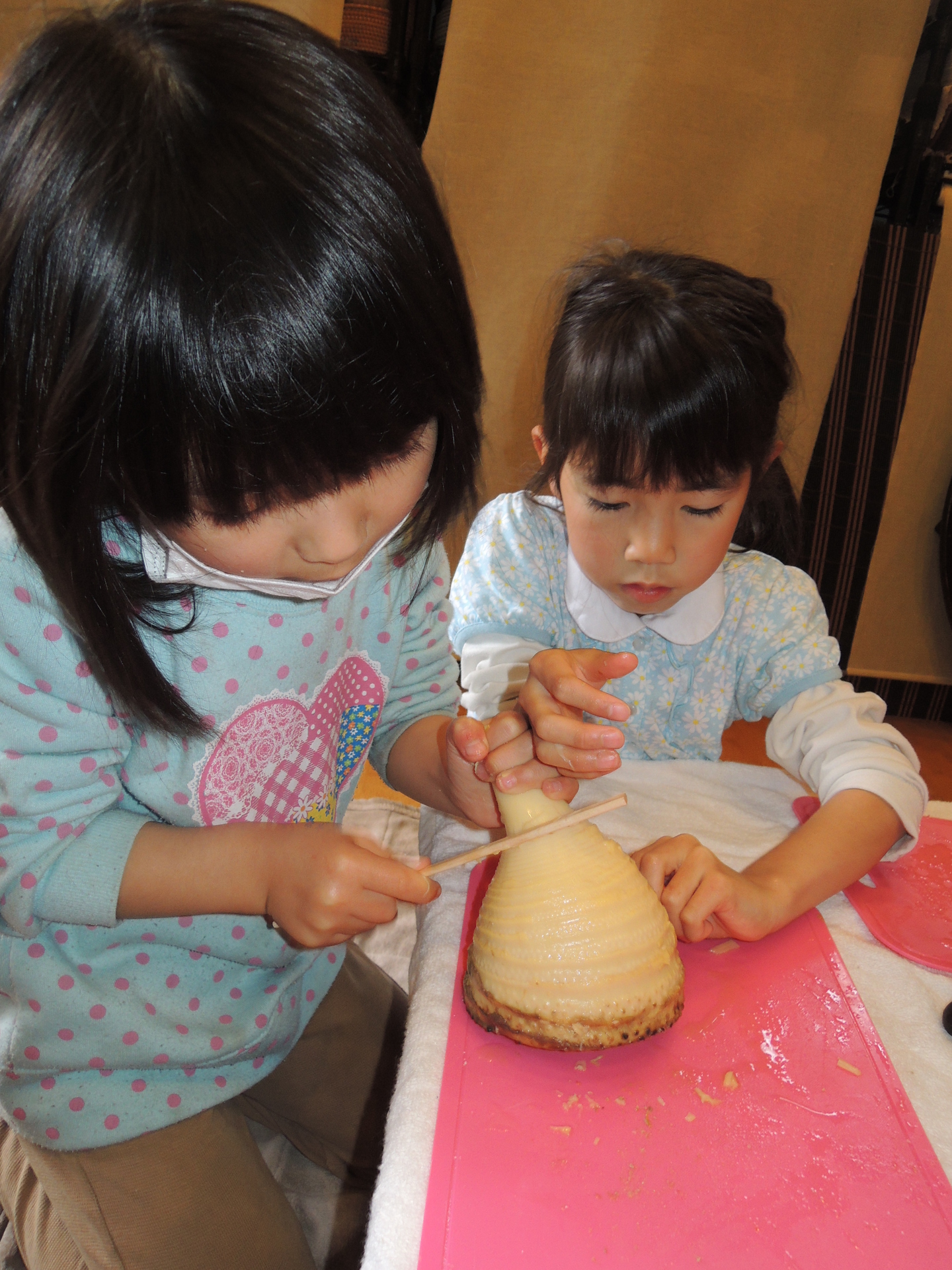竹の子の茹で方を学び、皮のむき方・切り方を実習。
