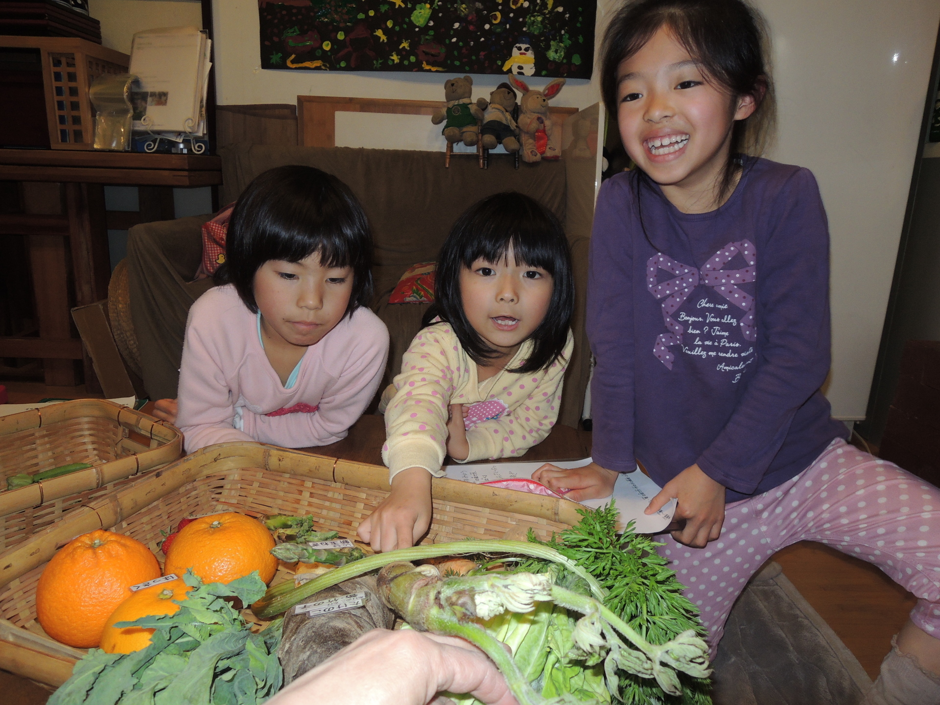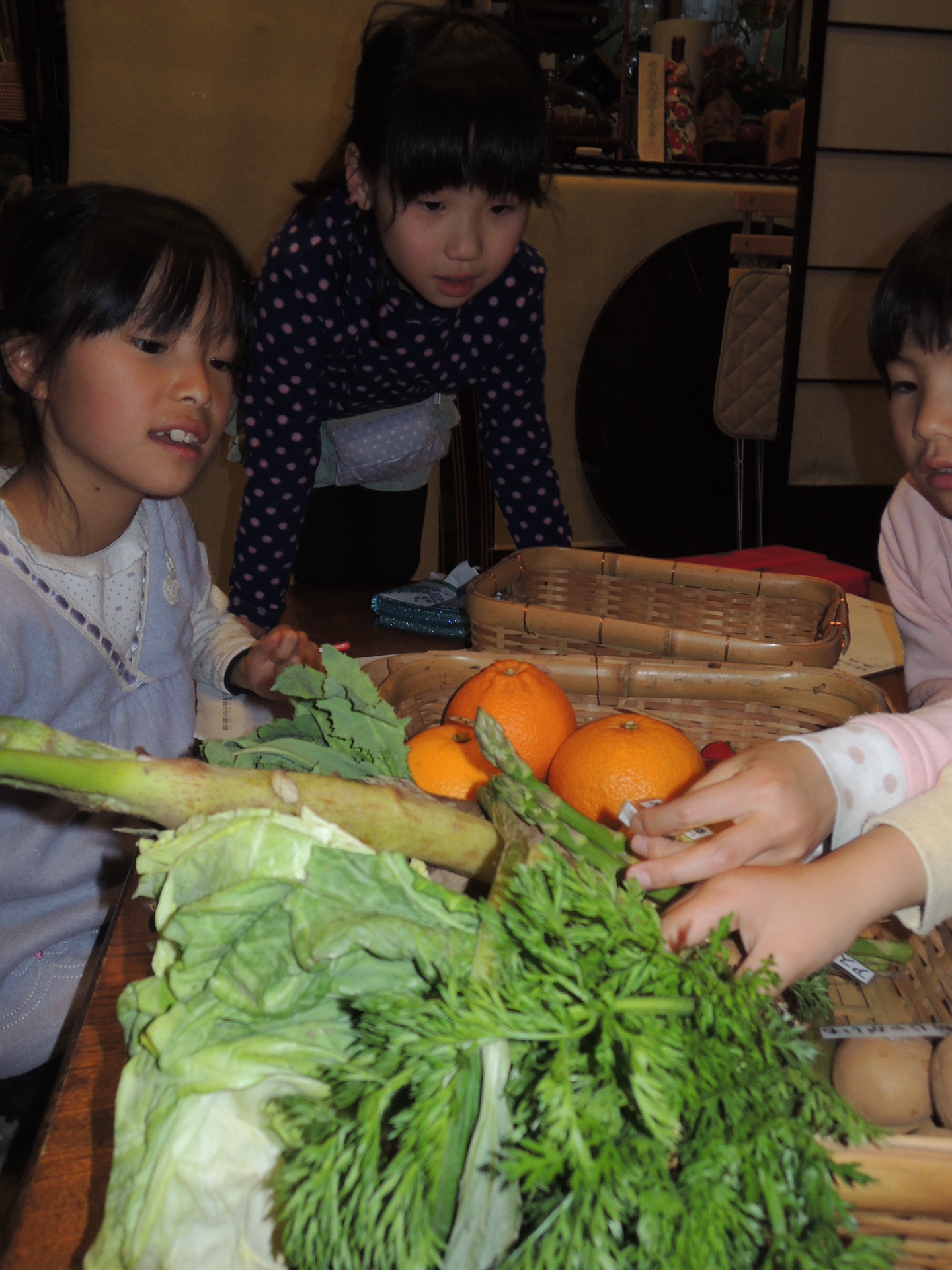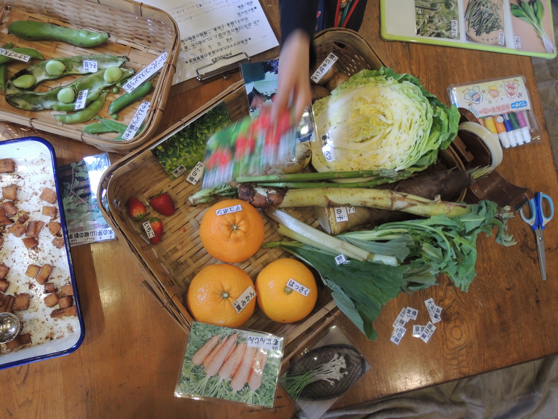 春の野菜・果物を実際に実物を見ながらのお勉強と、