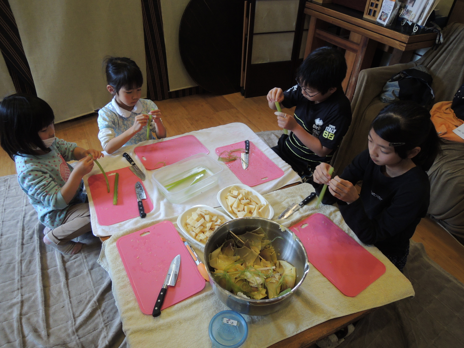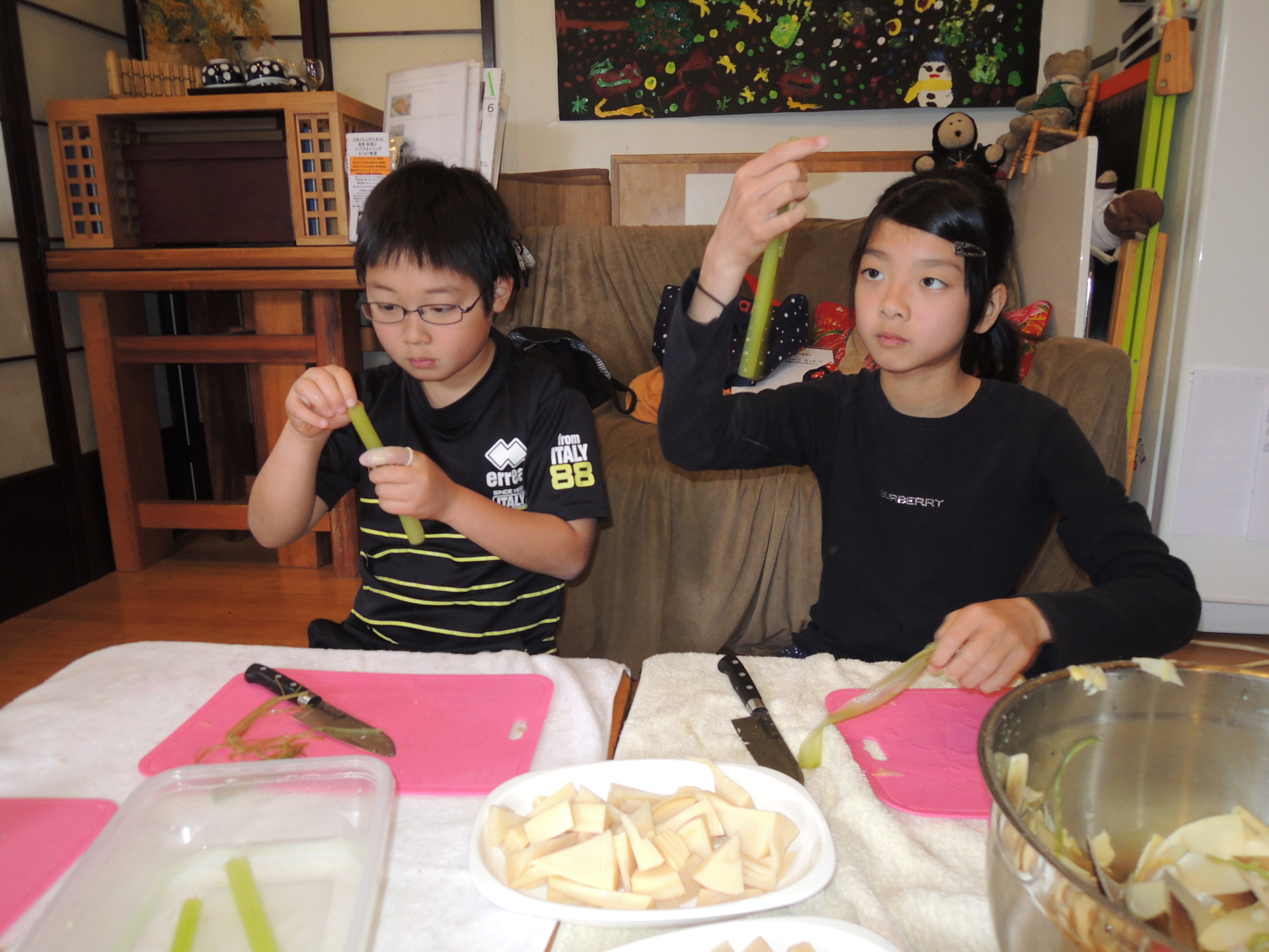 竹の子と蕗料理を作る!春の小学生の食育