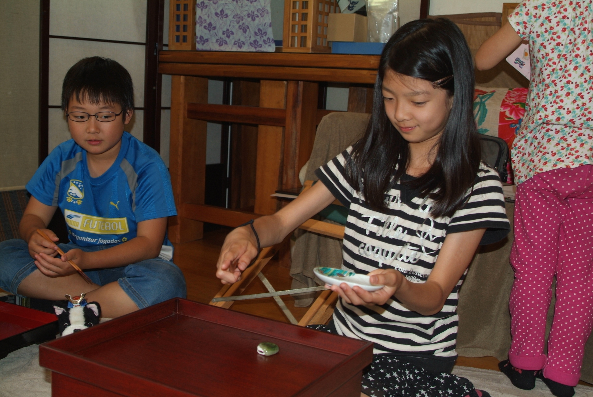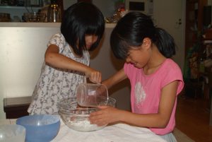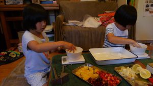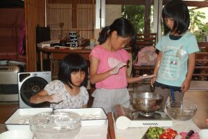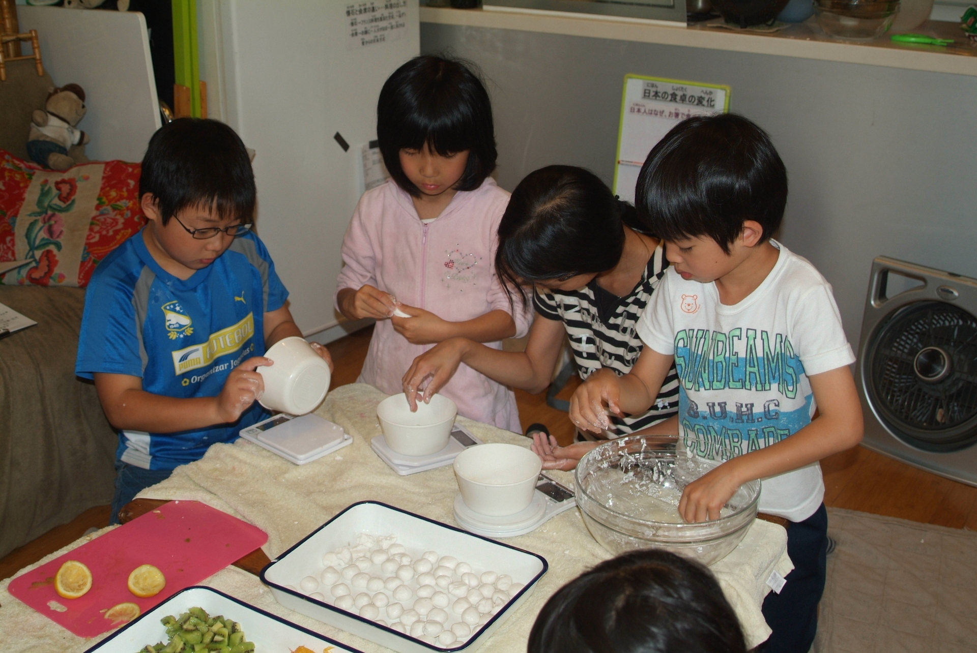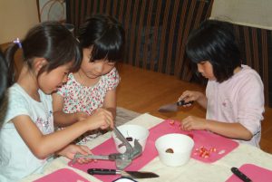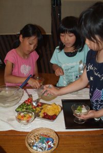 小学生の食育で、昔の日本の食事作法とフルーツ白玉作り
