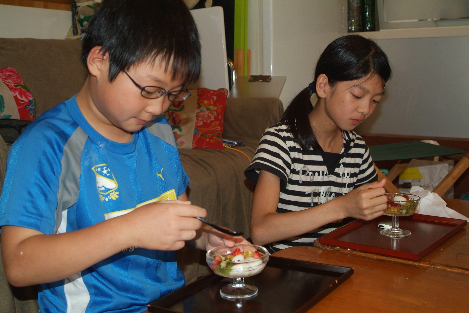 フルーツの数が多い少ないで、大騒ぎ。