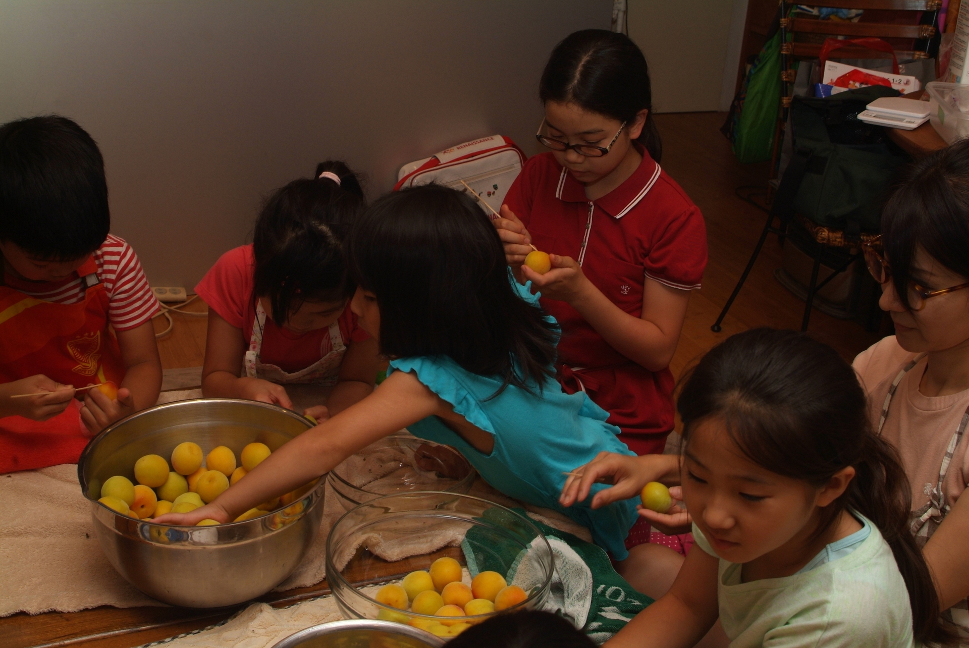 我が家の子供も含め、5親子で梅干作り。