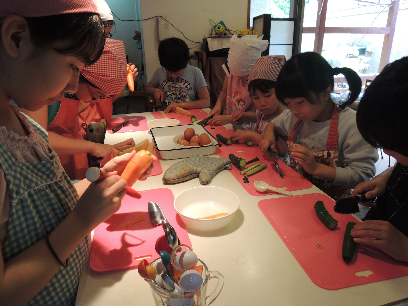年下はきゅうり・たくあんなどを、年上の子は人参の千切りを。