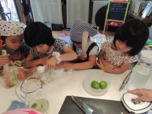 そして焼いている間に、ライムでキッズカイピリーニャを作ります。