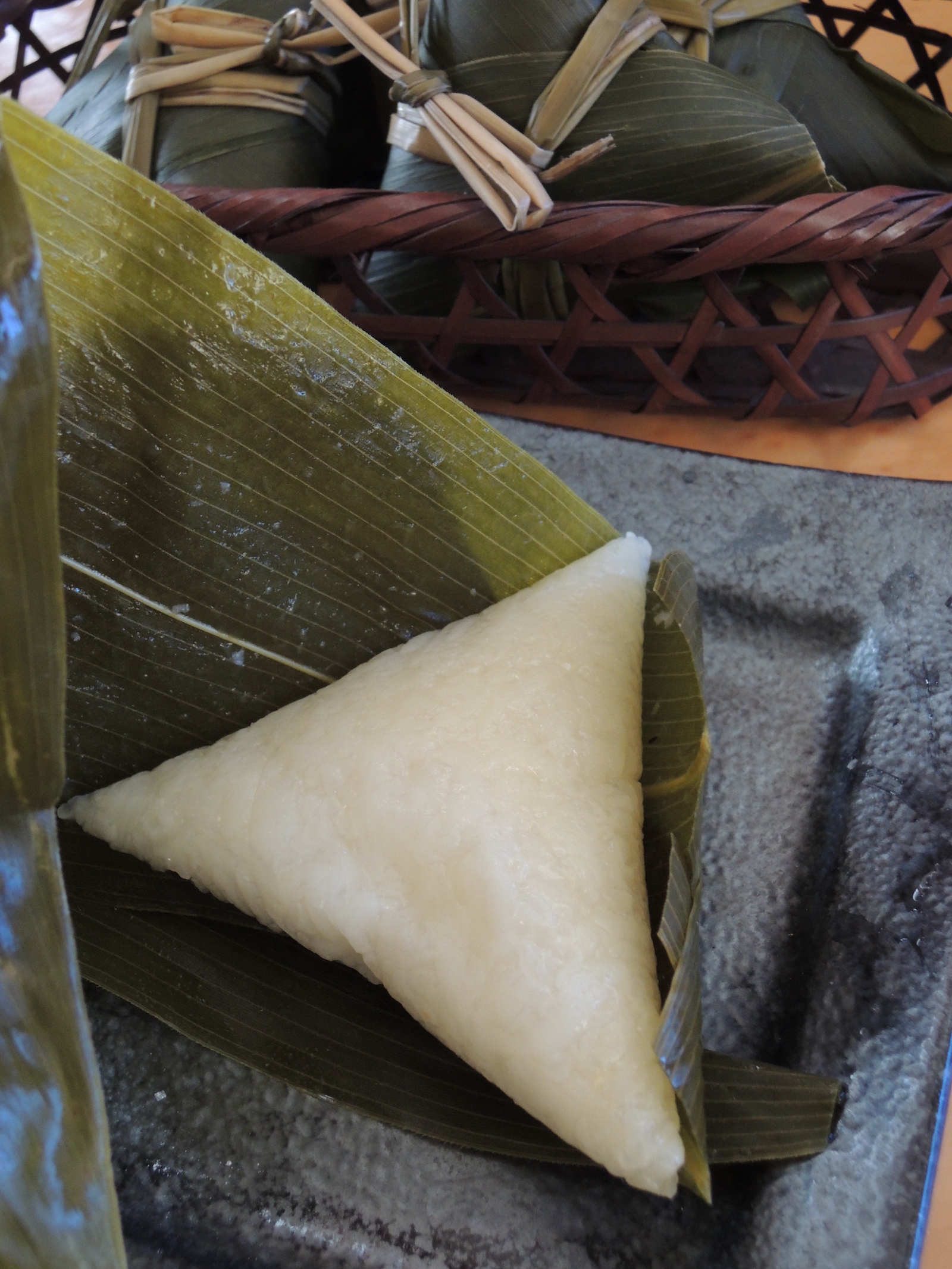 ネットで見たことある、三角形の新潟の粽。中はもち米だそう。