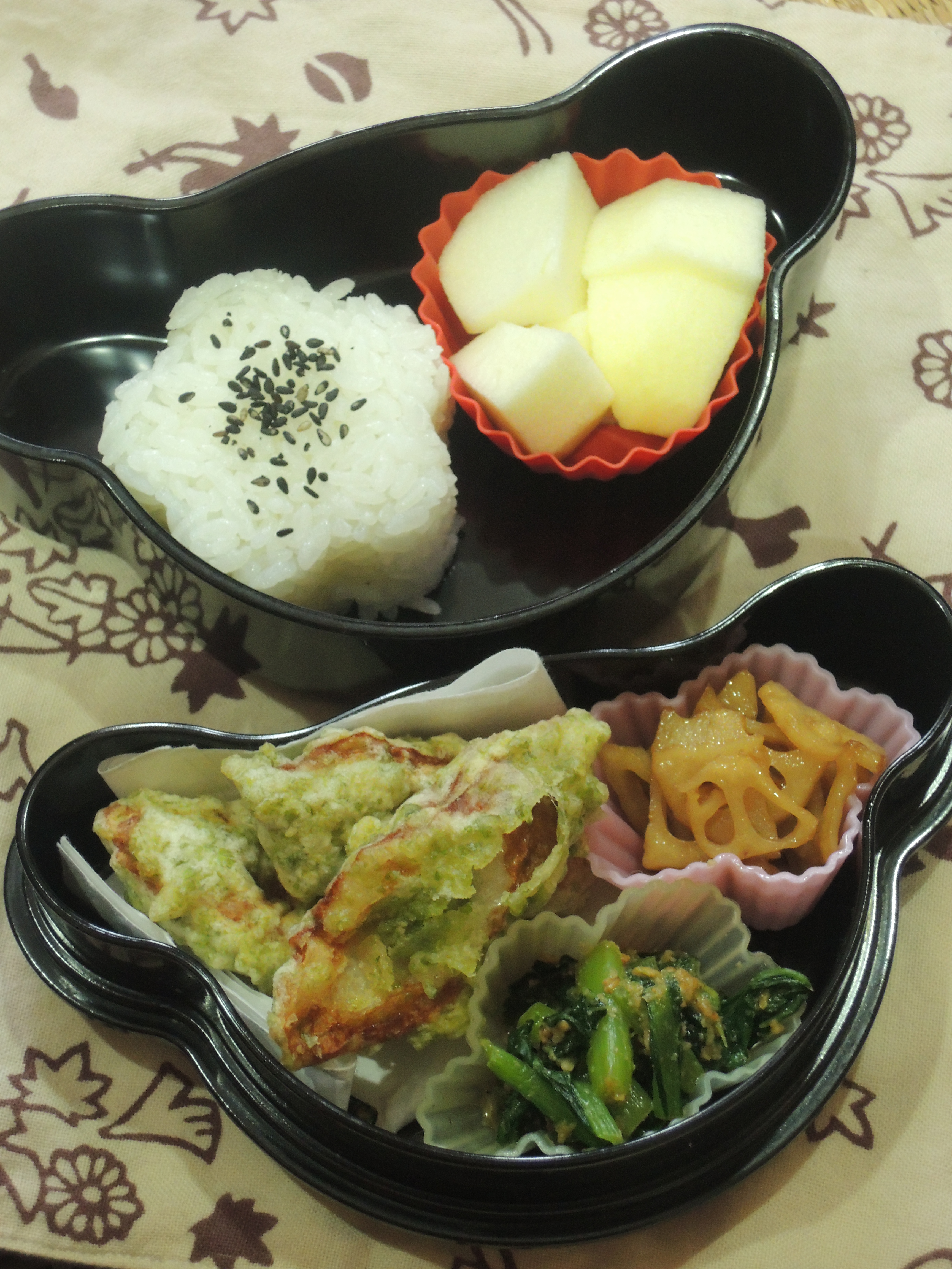 冬服に衣替えの頃の幼稚園児のための和風弁当