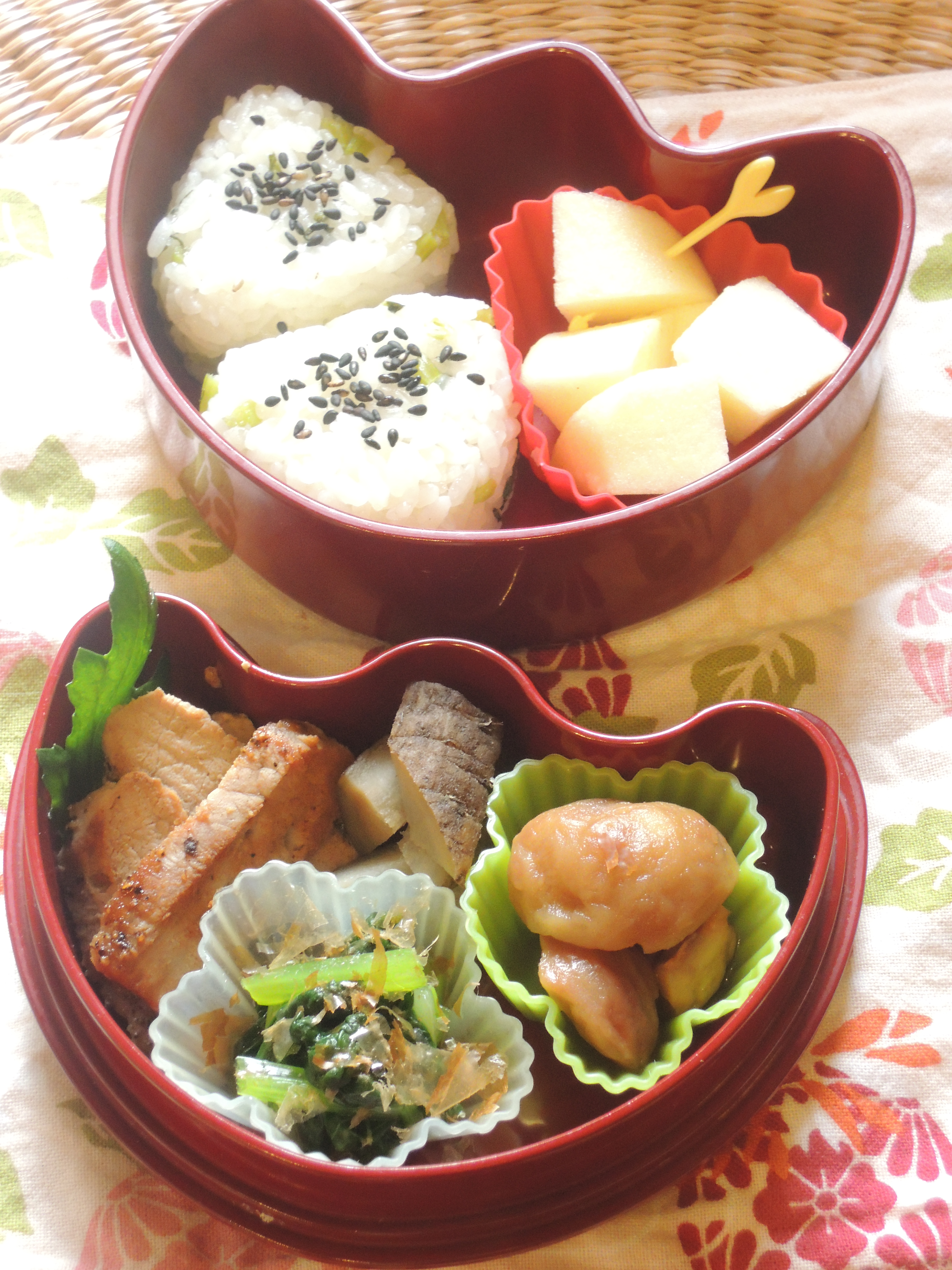 落葉樹色づく頃の幼稚園児のための和風弁当