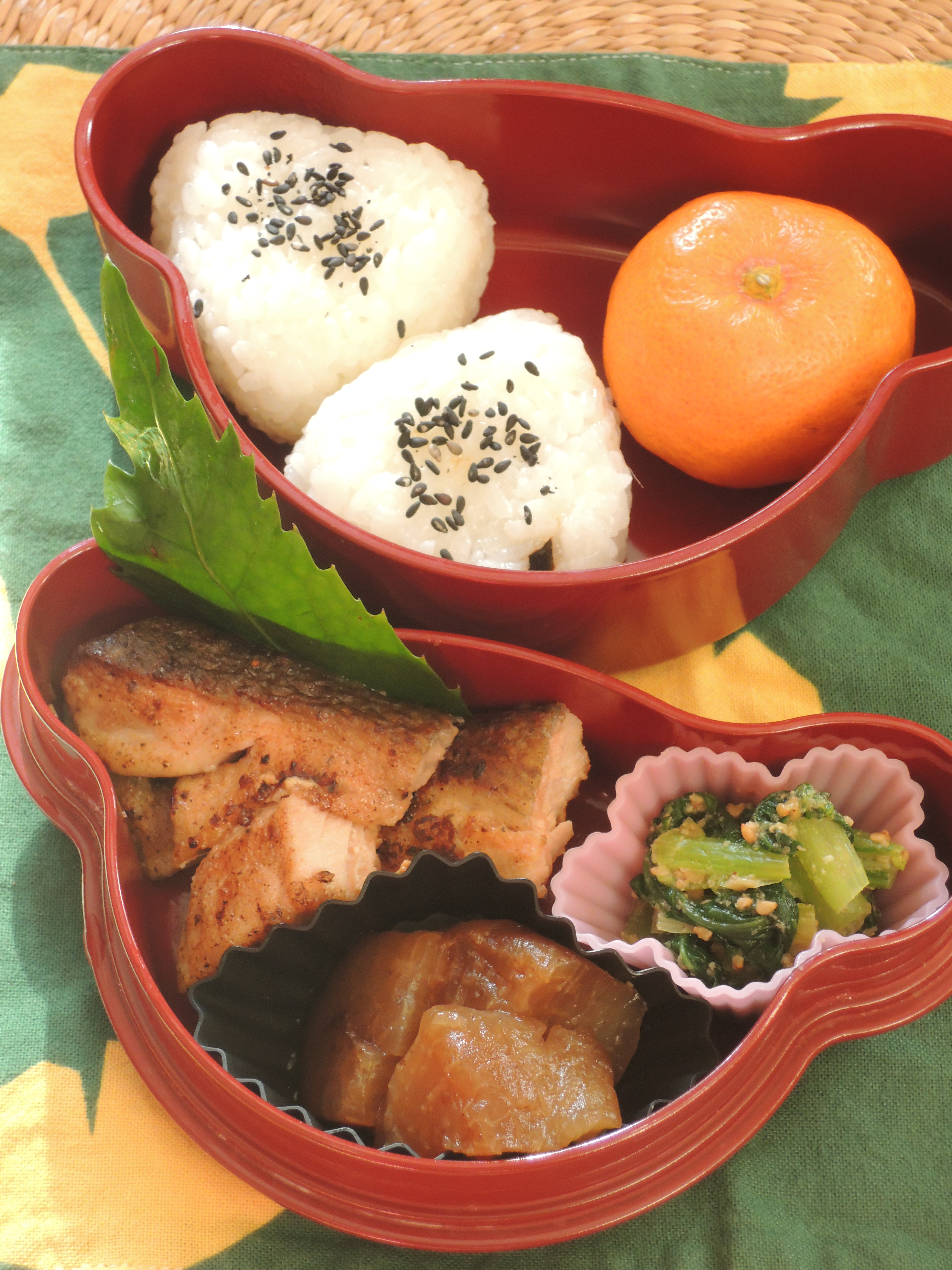 落ち葉舞う頃の幼稚園児のための和風弁当