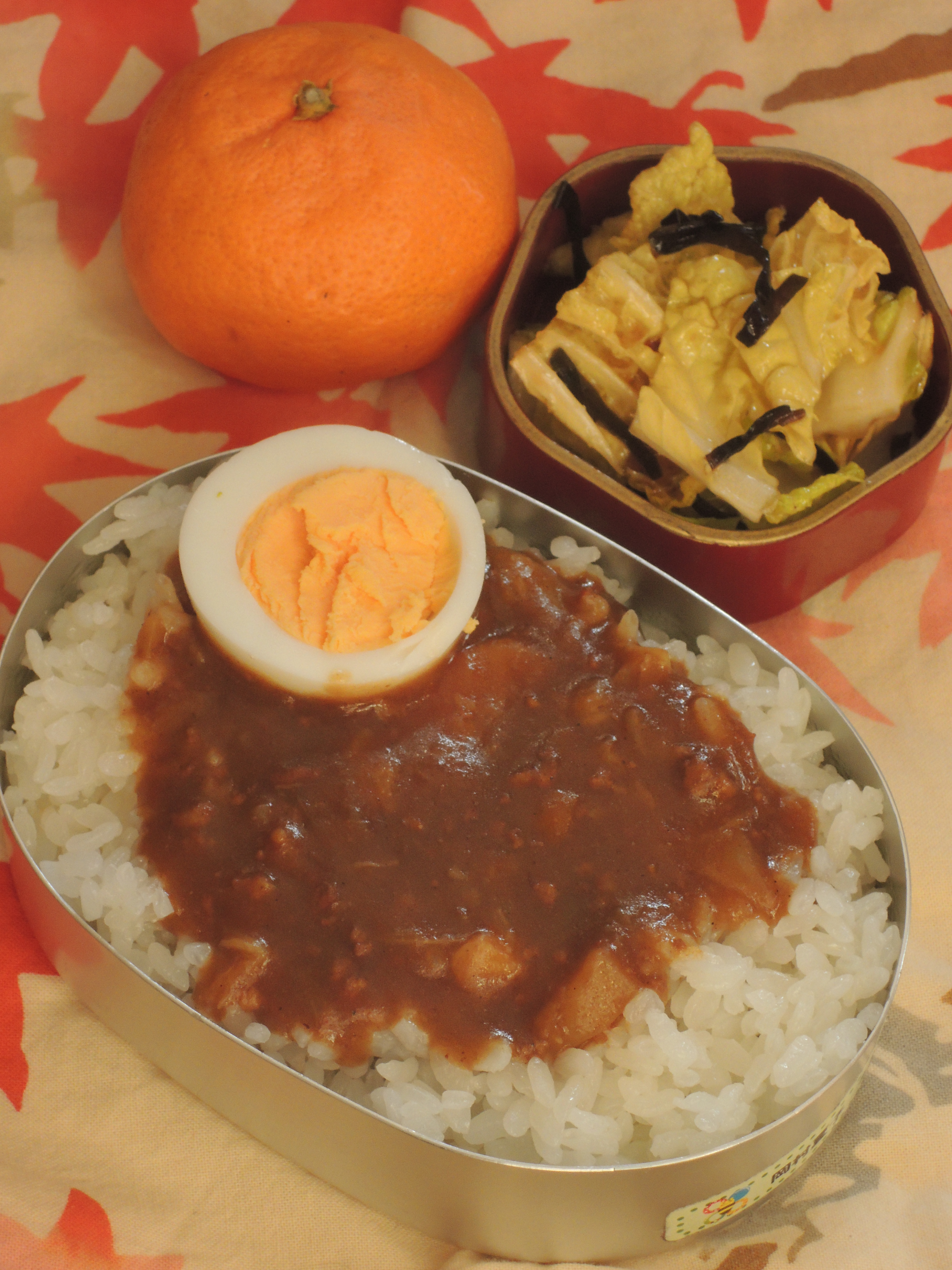 根菜とキャベツのゆで卵カレー&ご飯