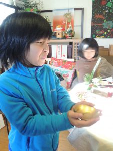 お友達と一緒に『伊達巻』と『栗きんとん』を私から習った長女。