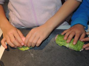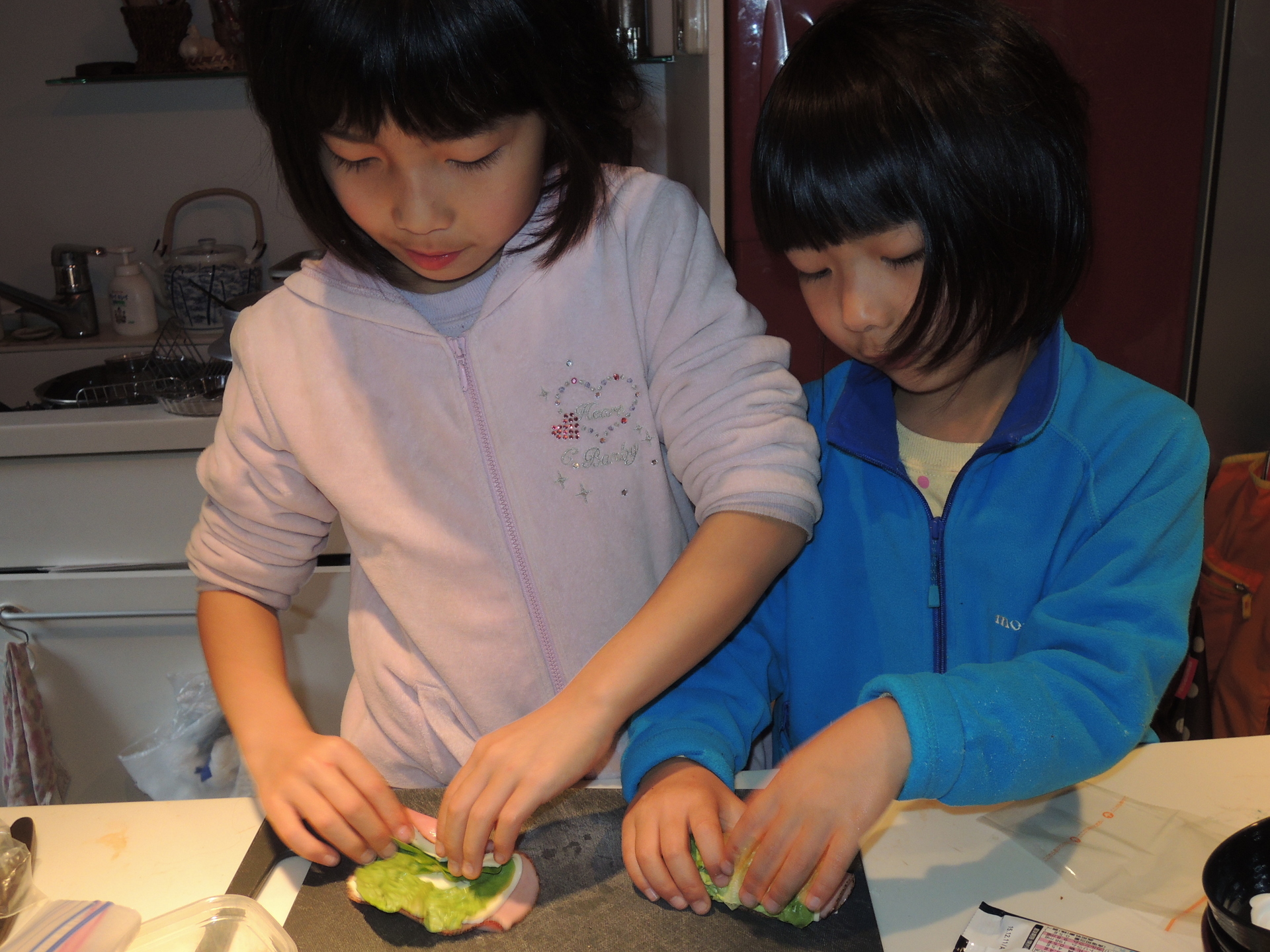 今朝は二人とも興奮しているのか、とっても早起き、一緒にお弁当を作る。