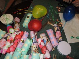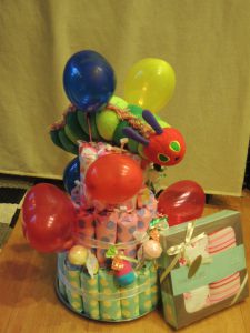 三段に重ねて、キャンドルや風船・リボンなど、いろいろ飾りマース♪