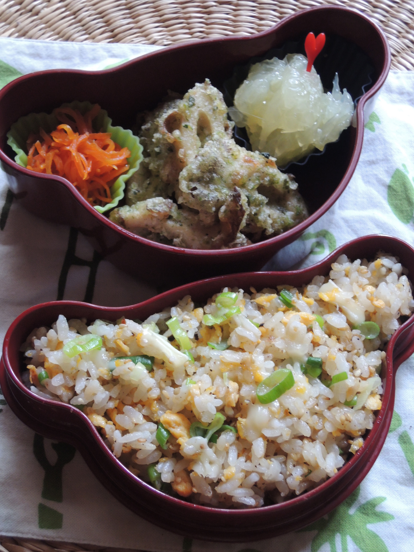 八重桜のつぼみ膨らむ頃の小学生・学童のための和風弁当