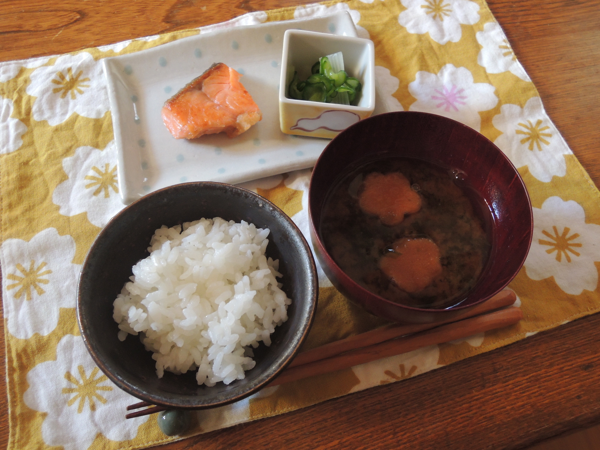 八重桜咲き始めの頃の小学生のためのニッポンの朝ごはん!