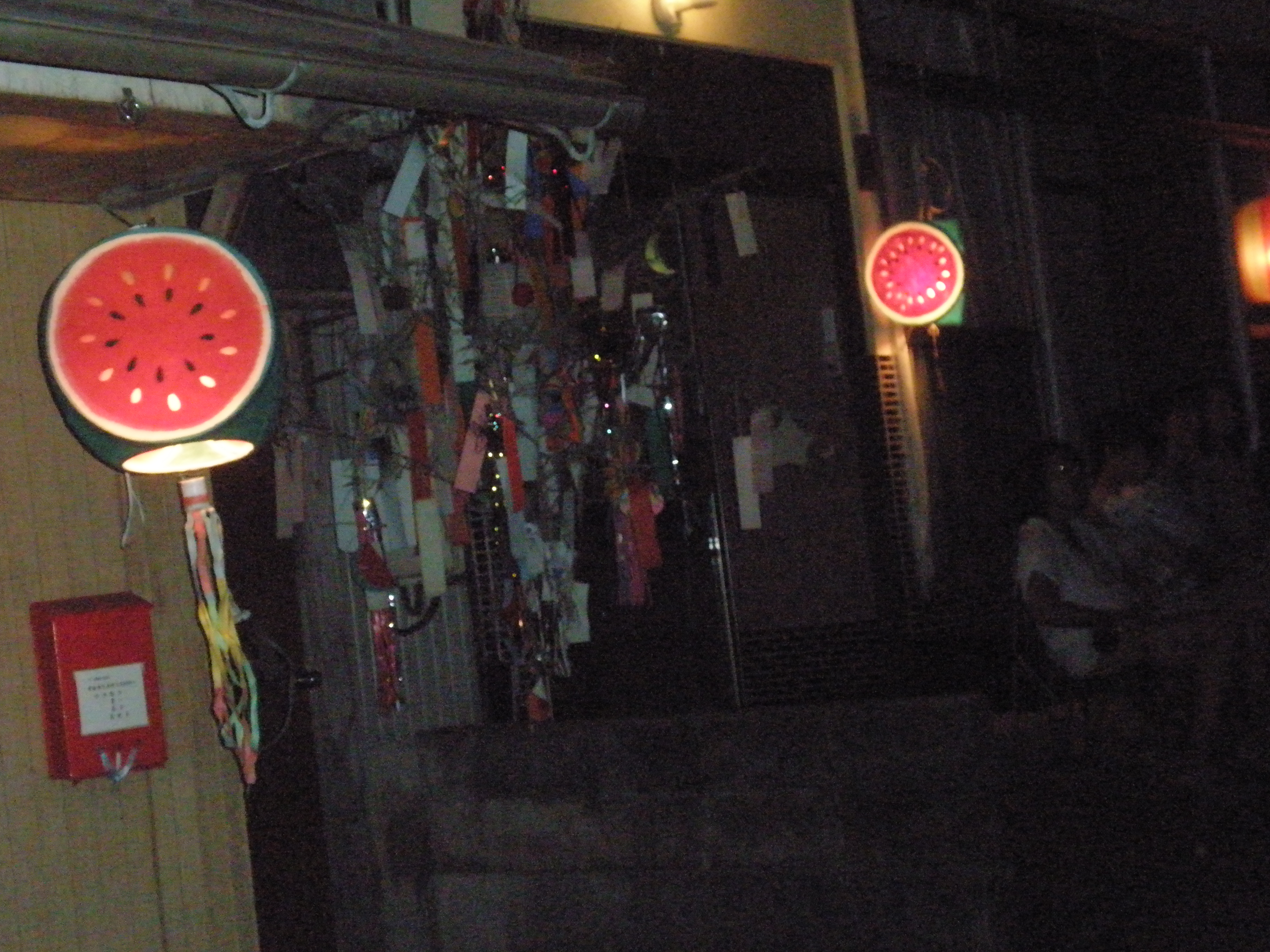 紙で出来たスイカの提灯があちこちに飾られてます。