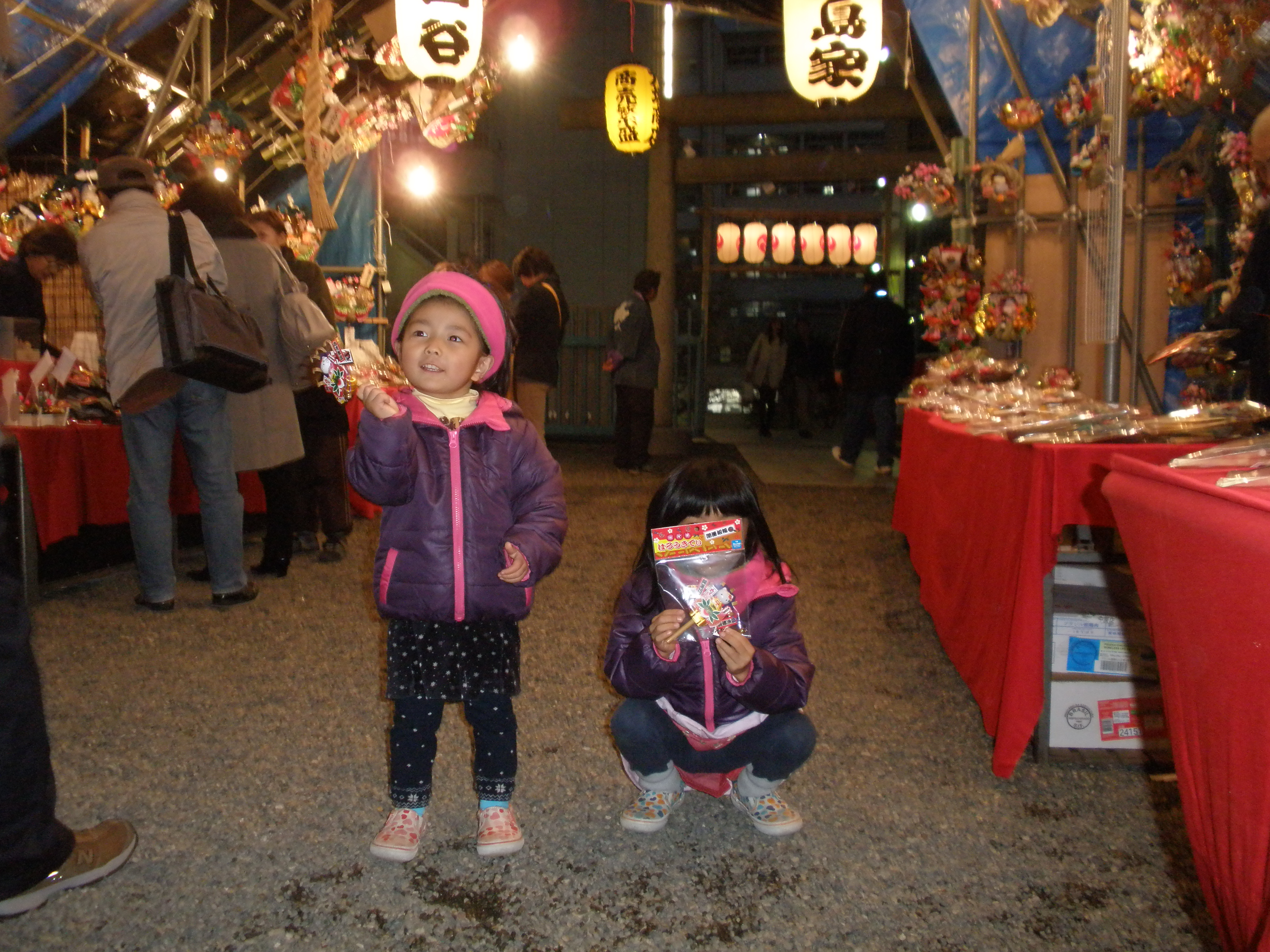 子供達はキティちゃんのミニ熊手を買って、記念撮影!