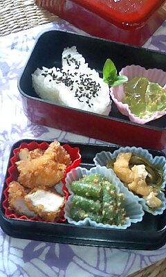 青空につばめ飛ぶ頃の幼稚園児のための和風弁当