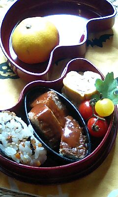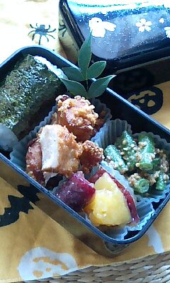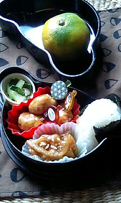 落葉舞い始めの頃の幼稚園児のための和風弁当